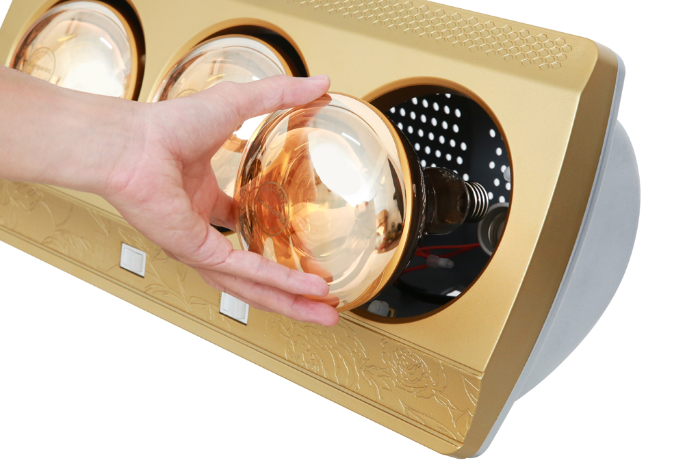 Bóng đèn sưởi được phủ lớp mạ vàng giúp làm giảm độ chói sáng nhưng không làm giảm hiệu quả làm ấm, ánh đèn vàng với bức xạ hồng ngoại không làm ảnh hưởng đến mắt, da.