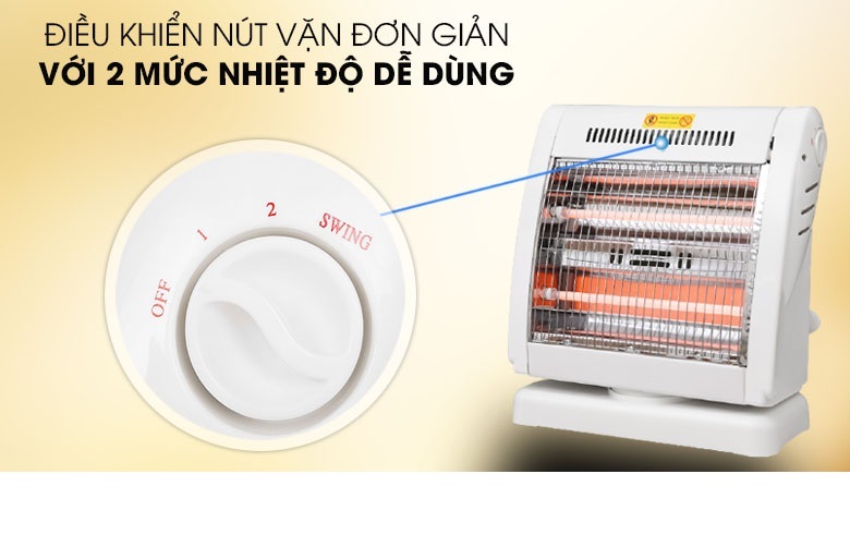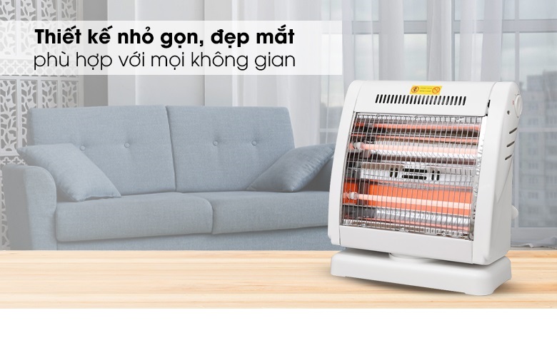 - Tự động ngắt điện khi quạt bị nghiêng hay đổ Đèn Sưởi Điện Halogen FJ-SNV1 - Hàng Chính Hãnglà một trong những thiết bị sưởi ấm không thể thiếu tại gia đình trong mùa đông. Sản phẩm sử dụng đèn Halogen, tỏa nhiệt đều, làm ấm nhanh, không gây khó thở và khô da, đảm bảo an toàn cho người sử dụng. Kiểu dáng sang trọng, hiện đại Đèn Sưởi Điện Halogen FJ-SNV1 - Hàng Chính Hãng có thiết kế sang trọng hơn, kiểu dáng hiện đại và bắt mắt, nhỏ gọn tiết kiệm diện tích và phù hợp mọi không gian như phòng khách, phòng ngủ, Điều khiển dễ dàng bằng nút xoay Đèn Sưởi Điện Halogen FJ-SNV1 - Hàng Chính Hãng có 2 mức công suất 400W, 800W điều chỉnh bằng núm vặn linh hoạt theo 2 chiều giúp bạn dễ dàng lựa chọn được mức nhiệt phù hợp với môi trường và nhu cầu sử dụng. Chắc chắn, bền đẹp, an toàn Đèn Sưởi Điện Halogen FJ-SNV1 - Hàng Chính Hãng có chân đế vững chãi, lưới bảo vệ, tránh gây bỏng cho người dùng. Đặc biệt, lồng và vỏ nhựa phía sau chống cháy tuyệt đối, lưới tản nhiệt giúp sản phẩm không bị hư hỏng do quá nóng. TỎA NHIỆT ĐỀU, KHÔNG GÂY KHÔ DA Làm ấm cực nhanh, không gây khô da Đèn Sưởi Điện Halogen FJ-SNV1 - Hàng Chính Hãng sử dụng đèn halogen, làm ấm cực nhanh, độ bền vượt trội, chống chói mắt hiệu quả và không đốt cháy oxy nên không gây khó thở hay khô da khi dùng. Quay đảo chiều, tỏa nhiệt đều khắp phòng Sản phẩm có khả năng quay đảo chiều liên tục, giúp tỏa nhiệt đều khắp phòng, rất thích hợp khi sử dụng tại không gian rộng như phòng khách hoặc phòng có nhiều người. An toàn với người sử dụng Đèn Sưởi Điện Halogen FJ-SNV1 - Hàng Chính Hãng có chế độ tự động ngắt điện khi bị nghiêng đổ và hoạt động trở lại bình thường trở lại trạng thái an toàn. Thông số kỹ thuật