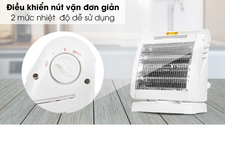 - Tự động ngắt điện khi quạt bị nghiêng hay đổ Đèn Sưởi Điện Halogen FUJIKA FJ-SNV1 - Hàng Chính Hãng là một trong những thiết bị sưởi ấm không thể thiếu tại gia đình trong mùa đông. Sản phẩm sử dụng đèn Halogen, tỏa nhiệt đều, làm ấm nhanh, không gây khó thở và khô da, đảm bảo an toàn cho người sử dụng. Kiểu dáng sang trọng, hiện đại Đèn Sưởi Điện Halogen FUJIKA FJ-SNV1 - Hàng Chính Hãng có thiết kế sang trọng hơn, kiểu dáng hiện đại và bắt mắt, nhỏ gọn tiết kiệm diện tích và phù hợp mọi không gian như phòng khách, phòng ngủ, Điều khiển dễ dàng bằng nút xoay Đèn Sưởi Điện Halogen FUJIKA FJ-SNV1 - Hàng Chính Hãng có 2 mức công suất 400W, 800W điều chỉnh bằng núm vặn linh hoạt theo 2 chiều giúp bạn dễ dàng lựa chọn được mức nhiệt phù hợp với môi trường và nhu cầu sử dụng. Chắc chắn, bền đẹp, an toàn Đèn Sưởi Điện Halogen FUJIKA FJ-SNV1 - Hàng Chính Hãng có chân đế vững chãi, lưới bảo vệ, tránh gây bỏng cho người dùng. Đặc biệt, lồng và vỏ nhựa phía sau chống cháy tuyệt đối, lưới tản nhiệt giúp sản phẩm không bị hư hỏng do quá nóng. TỎA NHIỆT ĐỀU, KHÔNG GÂY KHÔ DA Làm ấm cực nhanh, không gây khô da Đèn Sưởi Điện Halogen FUJIKA FJ-SNV1 - Hàng Chính Hãng sử dụng đèn halogen, làm ấm cực nhanh, độ bền vượt trội, chống chói mắt hiệu quả và không đốt cháy oxy nên không gây khó thở hay khô da khi dùng. Quay đảo chiều, tỏa nhiệt đều khắp phòng Sản phẩm có khả năng quay đảo chiều liên tục, giúp tỏa nhiệt đều khắp phòng, rất thích hợp khi sử dụng tại không gian rộng như phòng khách hoặc phòng có nhiều người. An toàn với người sử dụng Đèn Sưởi Điện Halogen FUJIKA FJ-SNV1 - Hàng Chính Hãng có chế độ tự động ngắt điện khi bị nghiêng đổ và hoạt động trở lại bình thường trở lại trạng thái an toàn. Thông số kỹ thuật