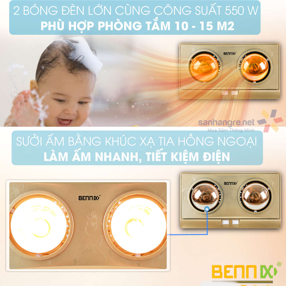 ✨Đèn sưởi nhà tắm Bennix 2 bóng BN-2G - Hàng chính hãng