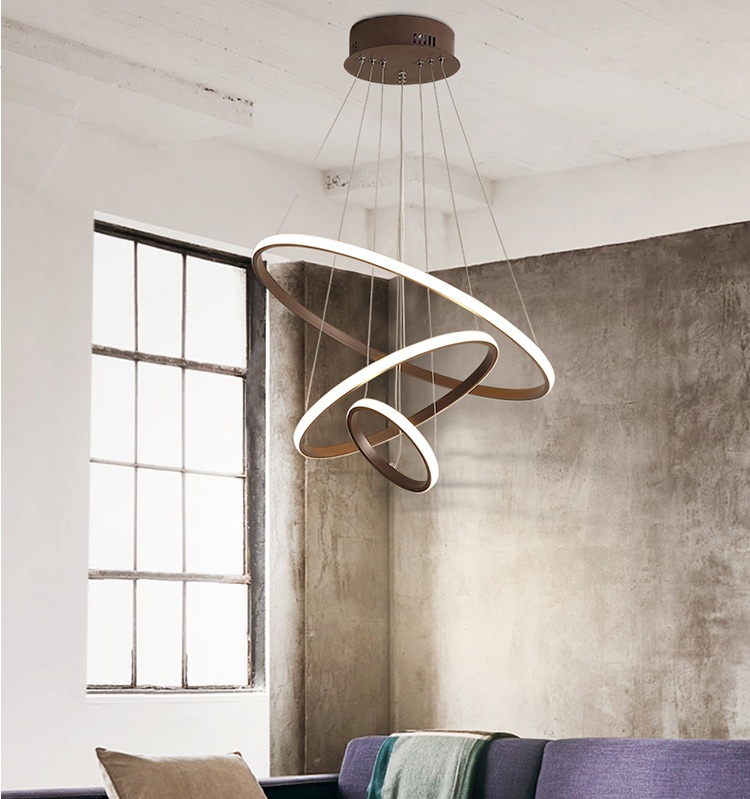 Đèn thả 3 vòng với phong cách thiết kế đơn giản nhưng sẽ giúp nổi bật không gian sống của gia đình bạn. Đèn thả 3 vòng là mẫu đèn thả được ưu chuộng nhất hiện nay, bởi giá thành hợp lý với khả năng tùy biến nhiều kiểu thả khác nhau, sẽ phù hợp với mọi không gian hiện đại. Đèn có điều khiển điều chỉnh chế độ ánh sáng từ xa vô cùng tiện dụng Thiết kế sang trọng, hiện đại, thích hợp với nhiều không gian và phong cách nội thất. Với điều khiển xa thông minh đèn có thể để chế độ ngủ đêm phục vụ cho nhu cầu xem phim, nghe ca nhạc Chức năng thay đổi 03 ánh sáng Trắng 6000K, Vàng 3000K và Trung tính 4500K Chức năng DIMMABLE: Tăng giảm ánh sáng của từng ánh sáng Có cấu tạo chip led công nghệ cao giúp đèn phát huy được ánh sáng tối đa, ánh sáng thu được chân thực như ánh sáng ban ngày. Tiết kiệm 80% điện năng.   Đèn thả với thiết kế vô cùng bắt mắt, bạn có thể thay đổi kiểu dáng bằng cách điều chỉnh độ dài các dây thả. Đèn LED 95w độ sáng rất tốt, đảm bảo khả năng chiếu sáng cao. Chiếc đèn này rất phù hợp cho những phòng khách, phòng ăn, quán ăn hiện đại, sang trọng.