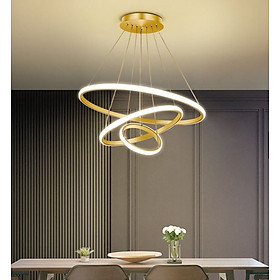 Đèn thả 3 vòng với phong cách thiết kế đơn giản nhưng sẽ giúp nổi bật không gian sống của gia đình bạn. Đèn thả 3 vòng là mẫu đèn thả được ưu chuộng nhất hiện nay, bởi giá thành hợp lý với khả năng tùy biến nhiều kiểu thả khác nhau, sẽ phù hợp với mọi không gian hiện đại.   -Điện áp vào: 220V 50Hz -Chất liệu: Thân nhôm sơn tĩnh điện + nhựa-mica dẫn sáng -Ánh sáng: Đổi 3 chế độ màu: Trắng/Vàng/Trung tính – 6000K -3000K- 4000k -Màu Sắc: Vàng -Loại Bóng: LED -Kích thước: đường kính lần lượt 60-40-20 (cm)   Đèn có điều khiển điều chỉnh chế độ ánh sáng từ xa vô cùng tiện dụng   Thiết kế sang trọng, hiện đại, thích hợp với nhiều không gian và phong cách nội thất.   Với điều khiển xa thông minh đèn có thể để chế độ ngủ đêm phục vụ cho nhu cầu xem phim, nghe ca nhạc   Chức năng thay đổi 03 ánh sáng Trắng 6000K, Vàng 3000K và Trung tính 4500K   Chức năng DIMMABLE: Tăng giảm ánh sáng của từng ánh sáng   Có cấu tạo chip led công nghệ cao giúp đèn phát huy được ánh sáng tối đa, ánh sáng thu được chân thực như ánh sáng ban ngày.   Tiết kiệm 80% điện năng.