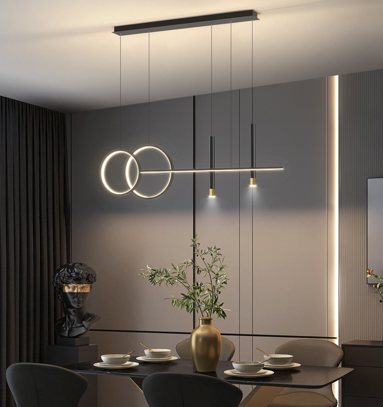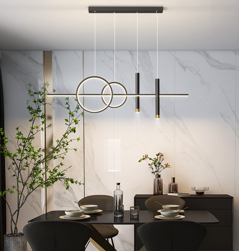 Thông qua việc trang trí nội thất của không gian có thể biết phần nào tính cách và con mắt nghệ thuật của chủ nhà. Bởi vậy những vật dụng trang trí nội thất luôn được người dùng lựa chọn cực kỳ cẩn thận. Đặc biệt là thiết bị chiếu sáng lại càng được chú trọng vì đây chính là sản phẩm cần thiết trong mọi không gian. Mỗi loại đèn lại có những ưu điểm và thiết kế khác nhau đem đến cho người dùng những cảm nhận khác biệt. Đèn thả hiện đại là một trong số các loại đèn độc đáo và mới lạ giúp không gian ngôi nhà bạn trở nên tươi mới hơn. THÔNG TIN SẢN PHẨM: Màu sắc: Đen Thân đèn làm bằng sắt cứng và quy trình sơn tinh tế, bền và sáng màu, chống ăn mòn, chống gỉ và chống trầy xước. Đế bắt trần chịu lực bền và chắc chắn, chống gió và chống rỉ sắt, khả năng chịu lực mạnh. Vòng kim loại dày làm bằng phần cứng chất lượng cao được sơn ở nhiệt độ cao màu sắc tươi sáng. Chụp đèn silicon có độ truyền ánh sáng cao, truyền ánh sáng đồng đều, ánh sáng dịu, dễ lau chùi. Chíp led tích hợp không nhấp nháy, tuổi thọ cao bảo vệ sức khẻo và đôi mắt của gia đình bạn. Kích thước sản phẩm: 100x58(cm) Ứng dụng: phòng ăn, phòng khách, khách sạn, Công nghệ chiếu sáng hiện đại của bóng đèn led giúp cho đèn bàn ăn đẹp cung cấp ánh sáng đều màu, ổn định trong khoảng diện tích từ 10-35 m2 mà không bị chập chờn, chớp nháy gây ảnh hưởng đến thị giác người nhìn. Hơn nữa, chúng còn làm nổi bật lên vẻ đẹp của các món ăn từ đó thu hút các thành viên trong gia đình quây quần lại thưởng thức. Không chỉ đóng vai trò cung cấp ánh sáng, Đèn thả trang trí còn là vật dụng làm nổi bật lên phong cách nội thất của không gian. Tại mỗi không gian, các bạn cũng nên biết cách bày trí sao cho đạt hiệu quả thẩm mỹ cao nhất. Đèn thả giúp mang lại những điều vui vẻ, hạnh phúc trong căn hộ của bạn. Chính vì thế nhiều gia đình lựa chọn lắp đèn thả trong phòng ngủ vừa tạo không gian ấm áp, lãng mạn. Vừa giúp tăng sự gắn kết trong hạnh phúc gia đình.