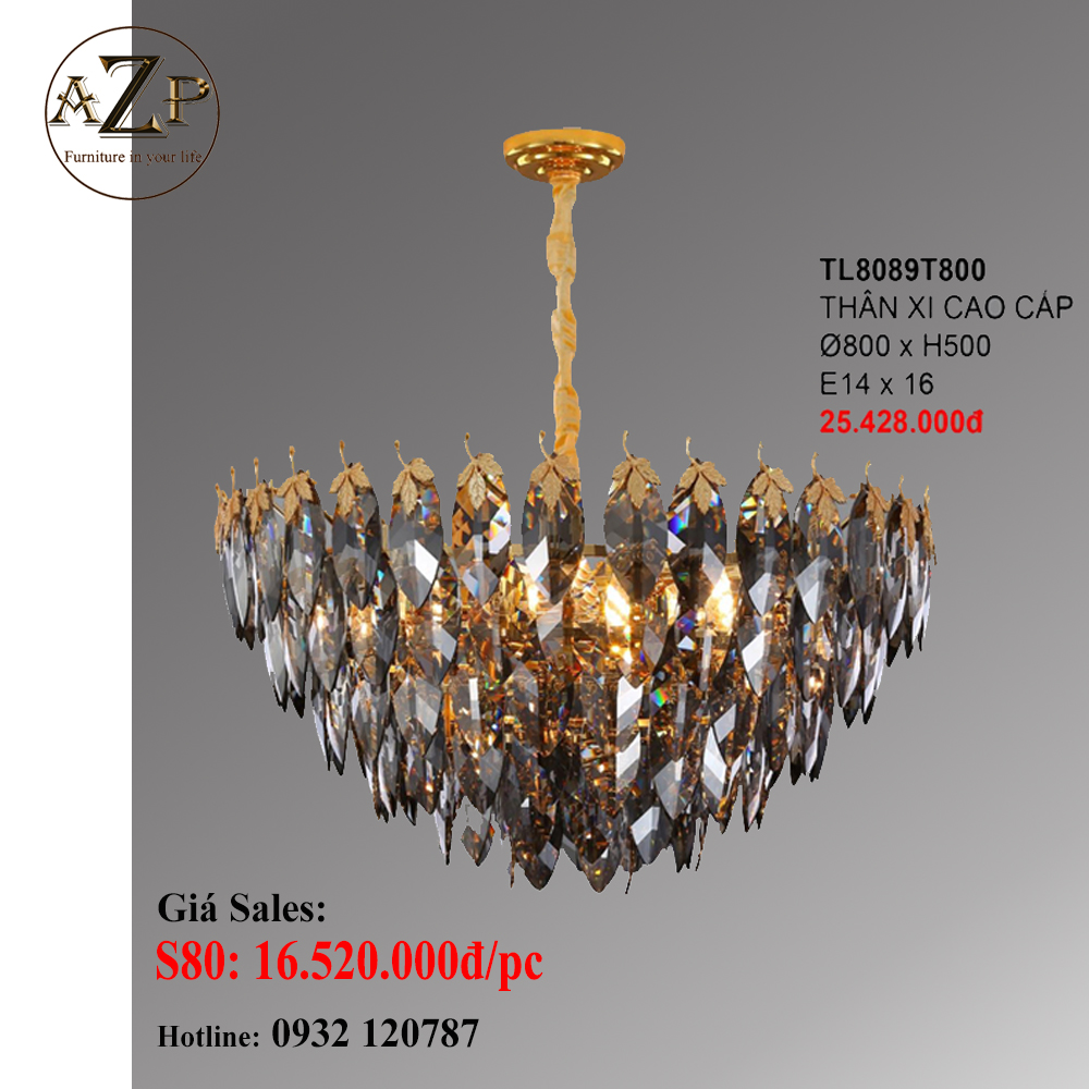 ĐÈN THẢ TRẦN PHA LÊ / ĐÈN THÔNG TẦNG TRANG TRÍ PHÒNG KHÁCH / PHÒNG NGỦ / CẦU THANG / KHÔNG GIAN SANG TRỌNG AZP-88220 phong cách đương đại, hàng nhập khẩu AZP Thông tin