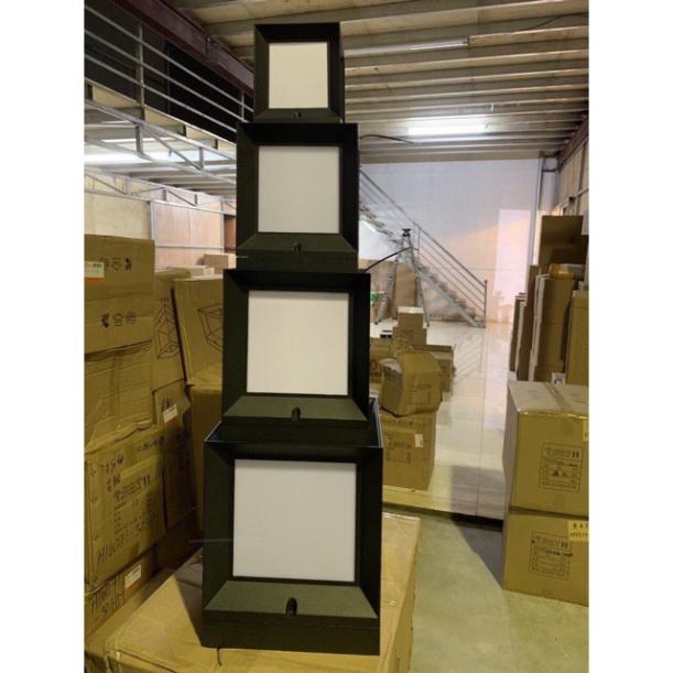 Chất liệu: khung là nhôm đúc,chao là nhựa chống nước Mầu sắc:khung sơn đen Số lượng :01c Nguồn điện: 220v Kích thước: sz s 15 x 15cm sz m 21 x 21cm sz L 26 x 26cm Phong cách: châu âu Nguồn sáng: cho dù là bóng Bảo hành :24 tháng
