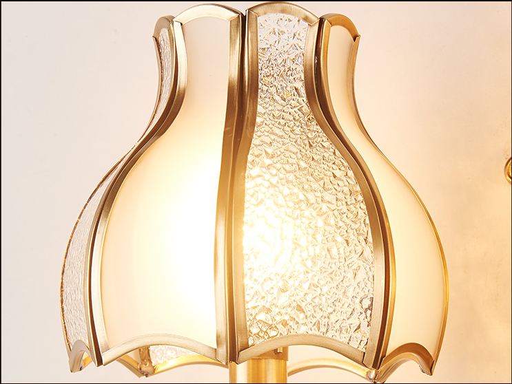 Thân đèn bằng đồng, chao bằng thủy tinh cao cấp