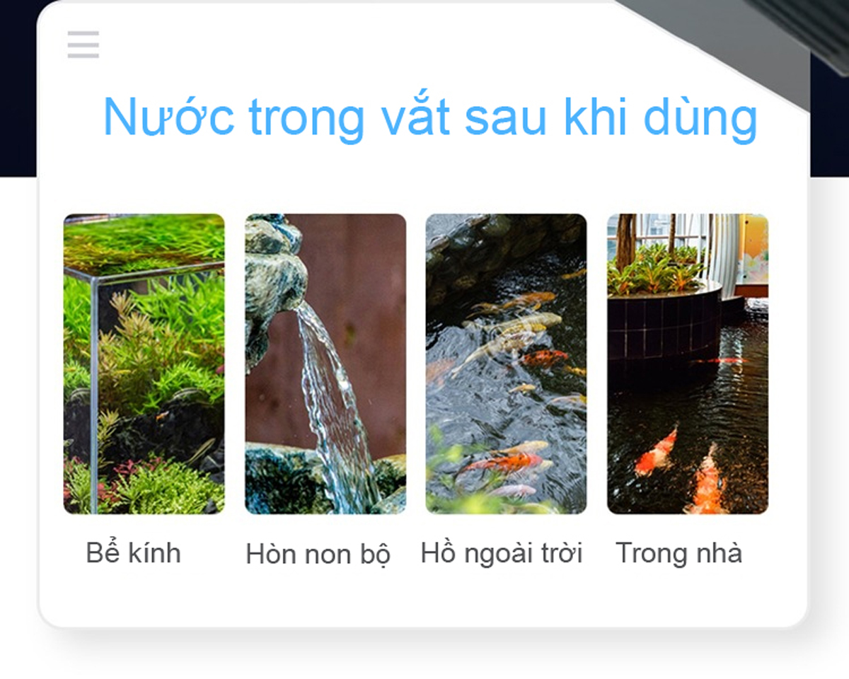 Loại bỏ rêu tảo triệt để: Ngăn chặn sự phát triển của rêu tảo, giúp nước luôn trong xanh, không còn tình trạng xanh nước hay váng bẩn.