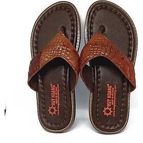 • Tên sản phẩm: Dép da cá sấu Huy Hoàng kiểu kẹp màu nâu đỏ HT7236