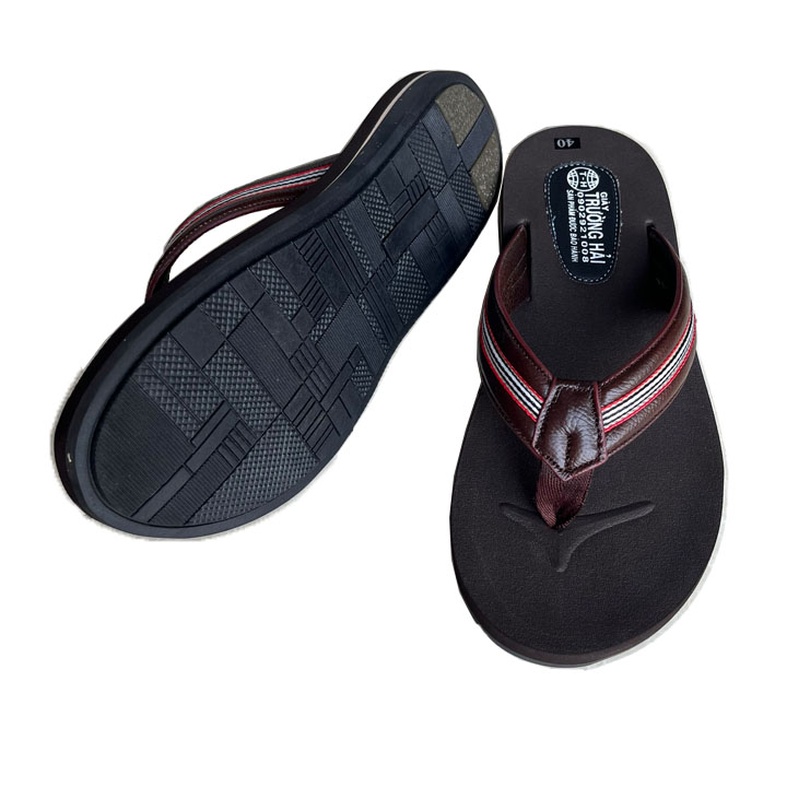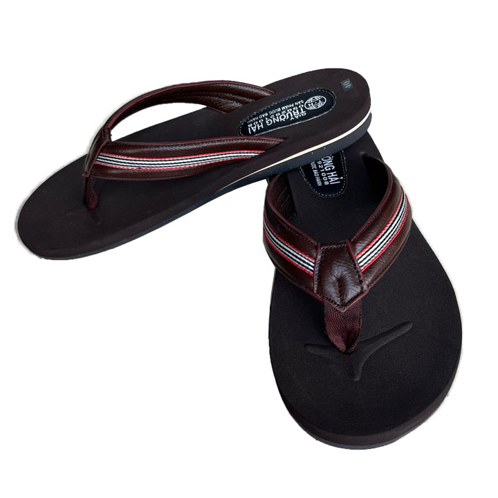 Dép nam một bản quai ngang Trường Hải da bò 2 màu đen nâu