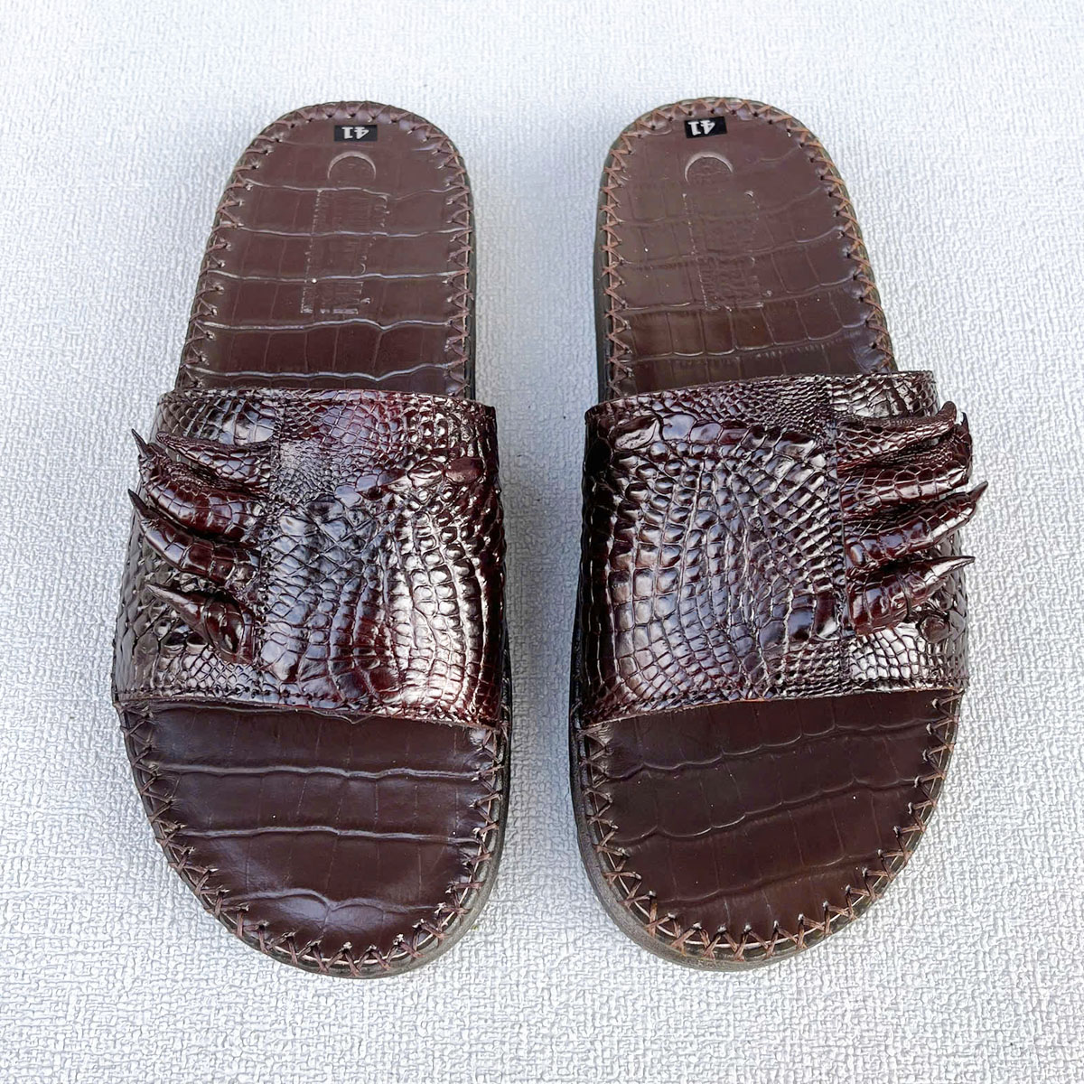 Dép Da Cá Sấu Quai Ngang Nam, Dép Quai Da Cá Sấu Thật 100% Nguyên Móng Đế Bọc Da Bò CS3