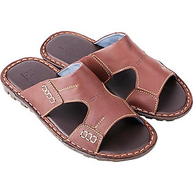 Dép nam Huy hoàng da bò quai ngang màu nâu 7136