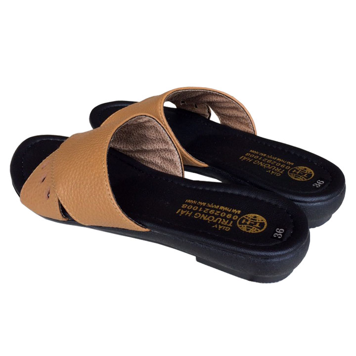 ✨Dép nữ quai ngang 1 bản da bò đế đúc cao cấp Trường Hải QNN01265