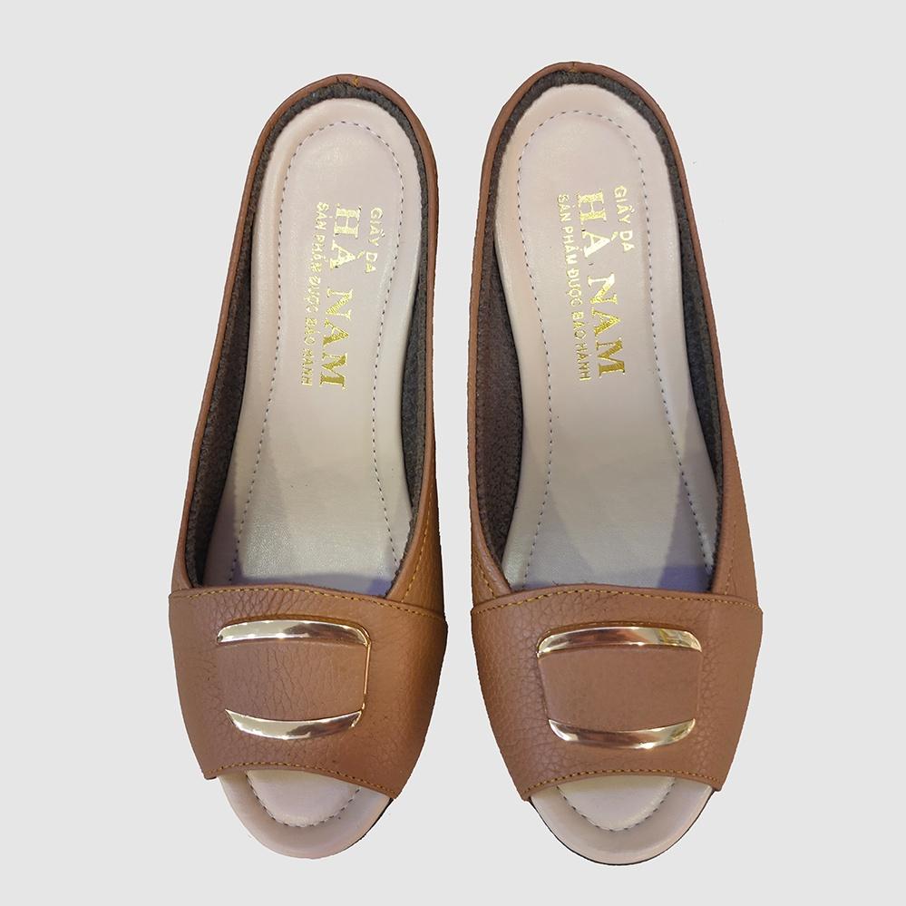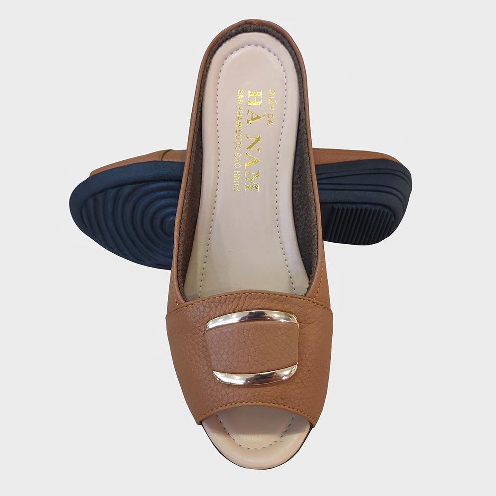 Dép nữ đế xuồng 5cm da bò thật