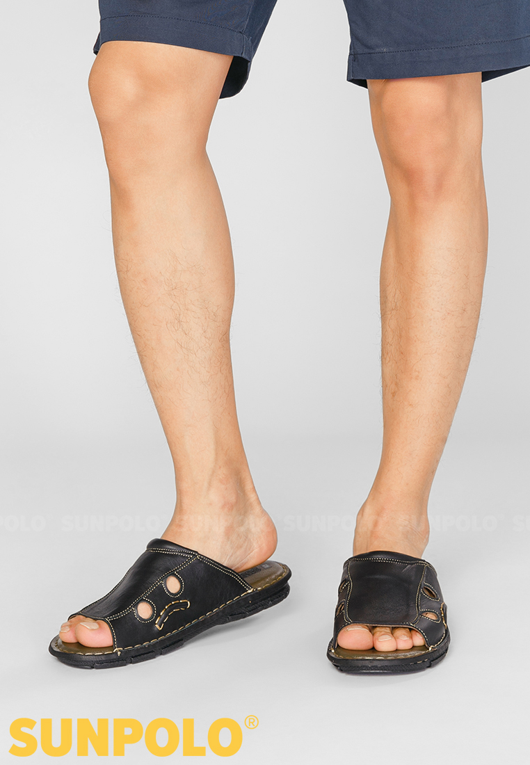 ✨Dép Quai Ngang Nam Da Bò SUNPOLO AQN015 (Đen)