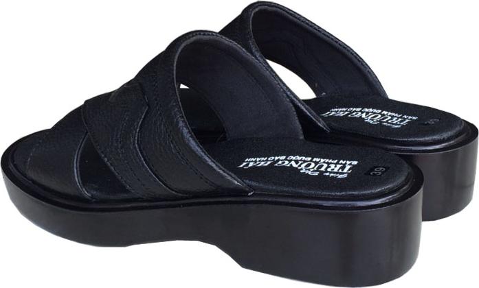 Dép da nam Quai ngang một bản da bò thật màu đen đế cao 2.5cm chính hãng Trường Hải DNĐ157