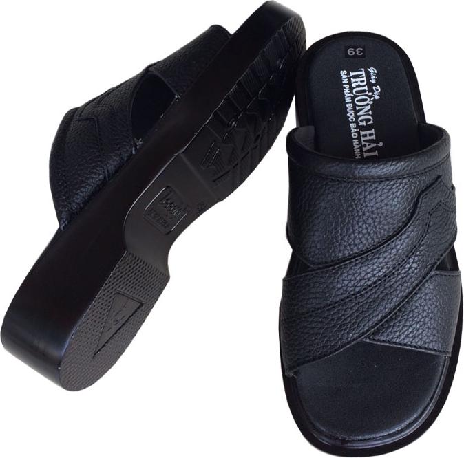 Dép nam quai ngang da bò Trường Hải đế cao 3.5cm