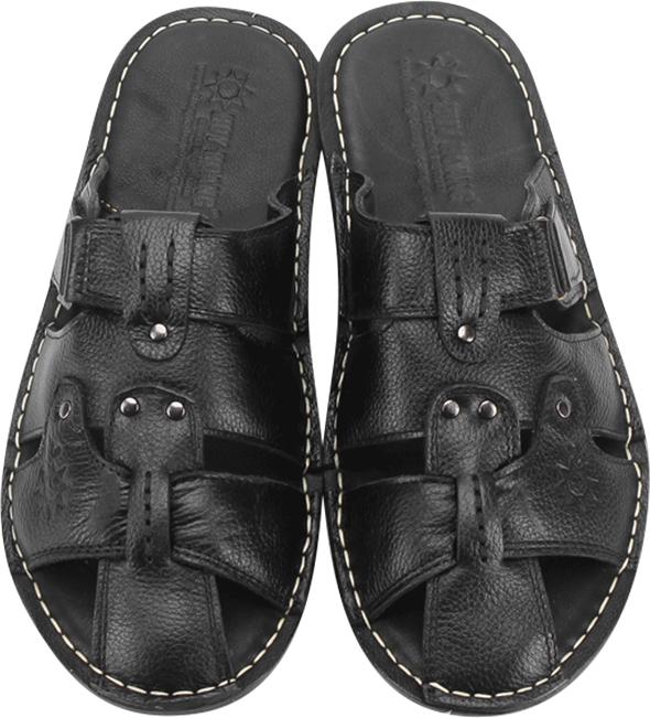 Dép nam Huy hoàng da bò quai hậu màu đen 7146