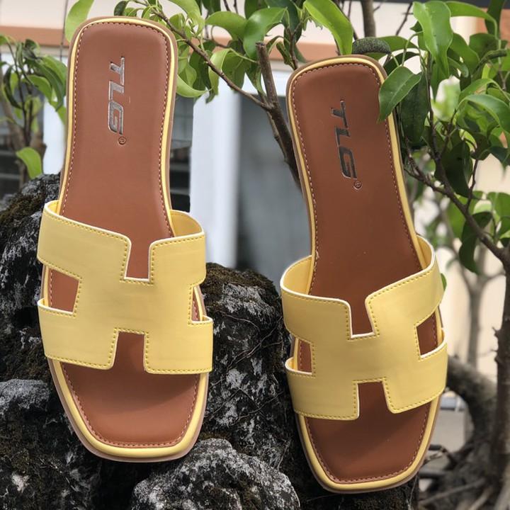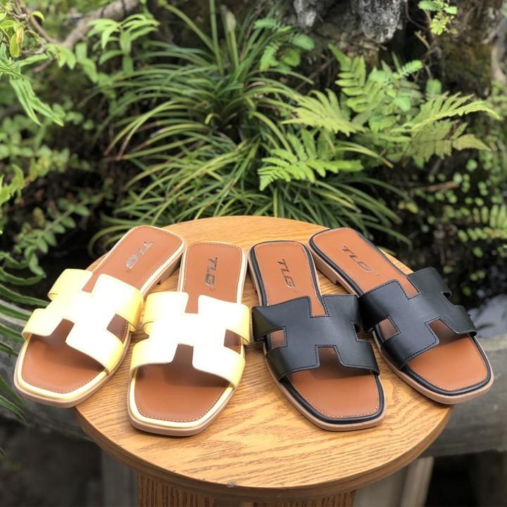 ✨Dép Thời Trang Nữ Da PU Cao Cấp Quai Ngang Chũ H Lót Dép Mềm Êm 21307