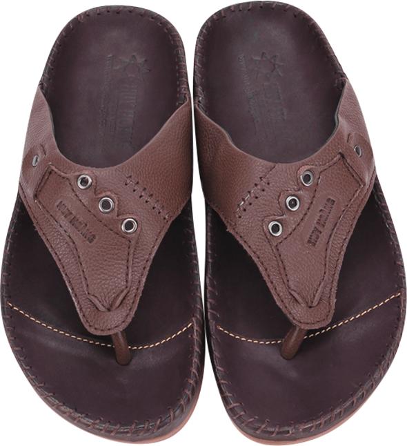 Dép nam Huy hoàng da bò xỏ ngón đan viền màu nâu 7727