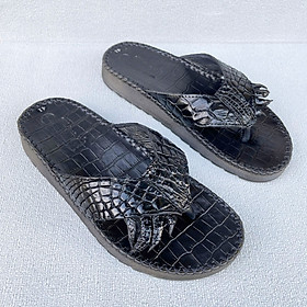 Dép xỏ ngón nam da cá sấu đế cao 3cm may viền có móng sang trọng DCS201