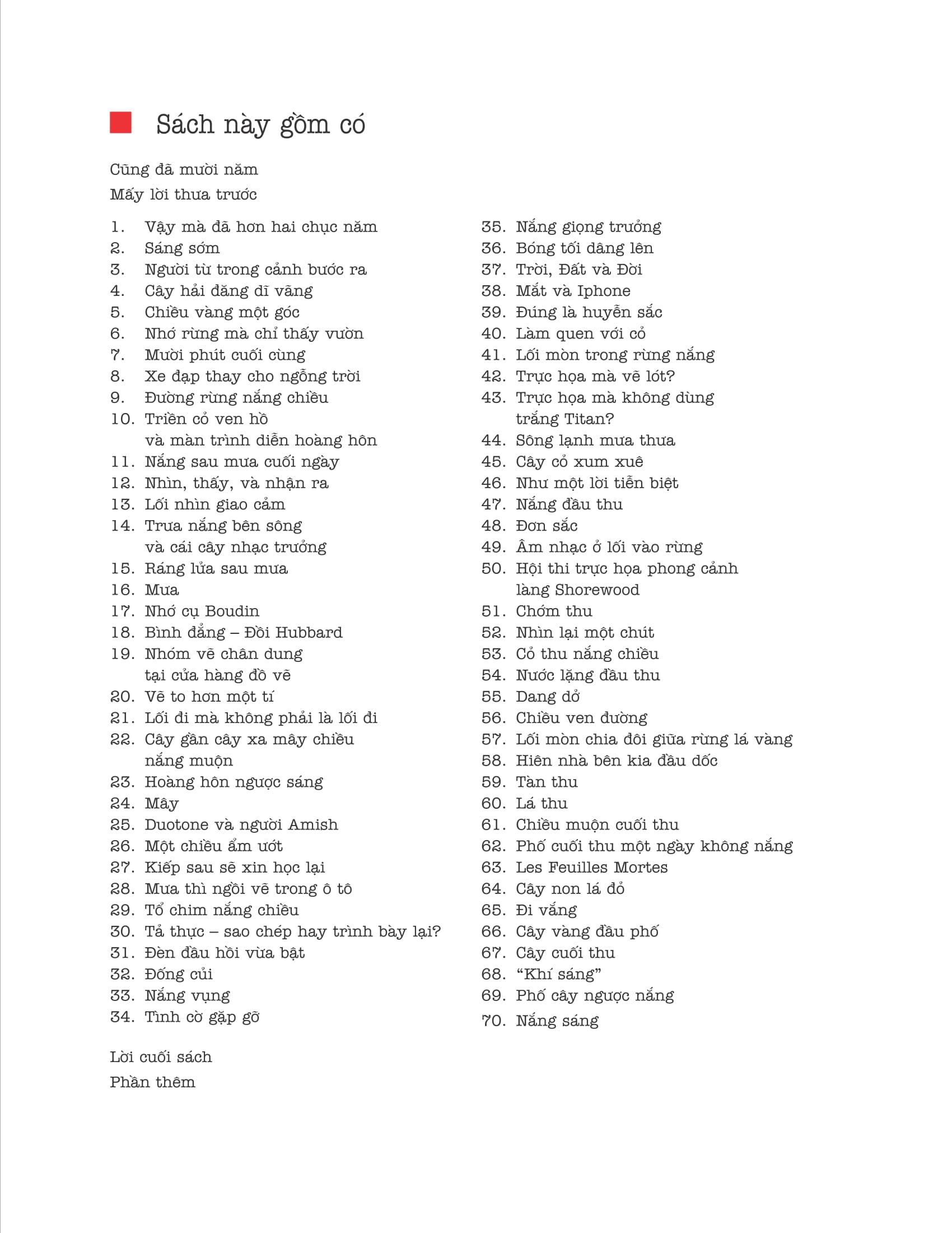 Có thể sẽ chẳng bao giờ gặp lại người đã trở thành một nhân vật trong bức tranh của m.ình. Nhưng ý nghĩ rằng đó là một người m.ình đã gặp và chuyện trò, một lưu dấu của cuộc sống có thật đã làm nên bức tranh, khiến m.ình thấy an bình và biết ơn việc đi vẽ phong cảnh ngoài trời thật nhiều. (tr.19)