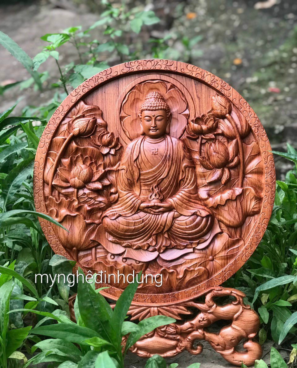 ✨Đĩa khắc phật adi đà bằng gỗ hương đá kt mặt tròn 40cm