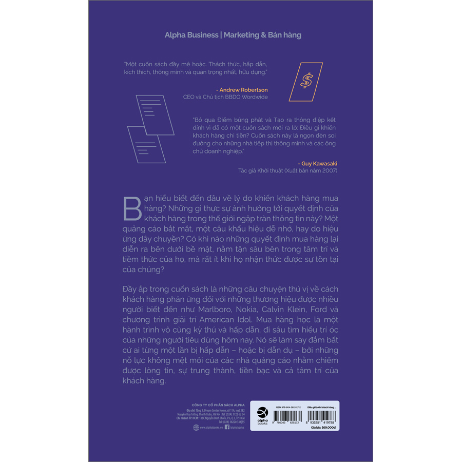 "Đầy ắp những câu chuyện thú vị về cách mà bộ não, các thương hiệu và cảm xúc dẫn dắt sự lựa chọn của người tiêu dùng. Sự kết hợp sáng tạo giữa tiếp thị và khoa học thần kinh của Martin Lindstrom đã cho chúng ta một cái nhìn sâu sắc hơn về sự năng động, sức mạnh to lớn của tiềm thức ảnh hưởng như thế nào đến các quyết định mà chúng ta đưa ra. Một khi đã đọc cuốn sách này, bạn sẽ nhìn nhận các hành vi của người tiêu dùng và nhà sản xuất bằng một con mắt hoàn toàn khác." - Philip Kotler, Tiến sĩ, Giáo sư danh dự S.C Johnson & Son, khoa Tiếp thị Quốc tế, Trường Quản trị Kellogg, Đại học Northwestern.