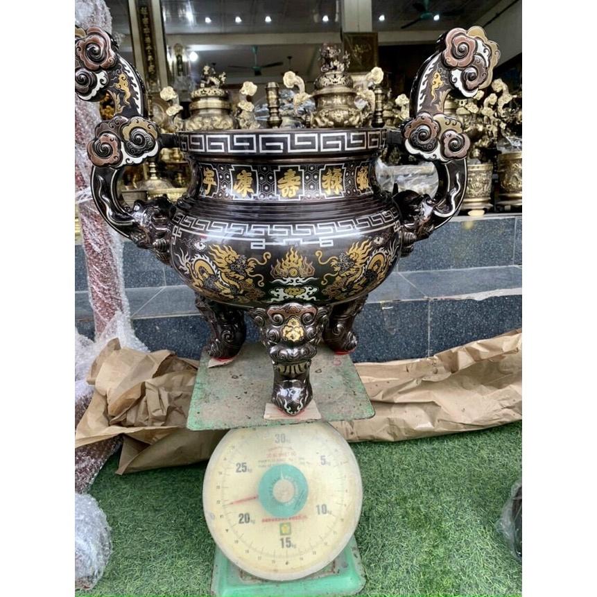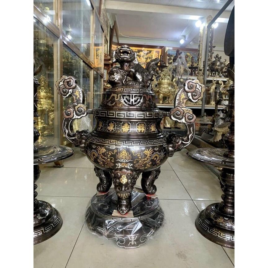 ✨Đỉnh đồng ngũ sự khảm vàg bạc. thật.cao 70 cm nặng 65 kg chất liệu bằng đồng bộ thờ cúng phong thủy