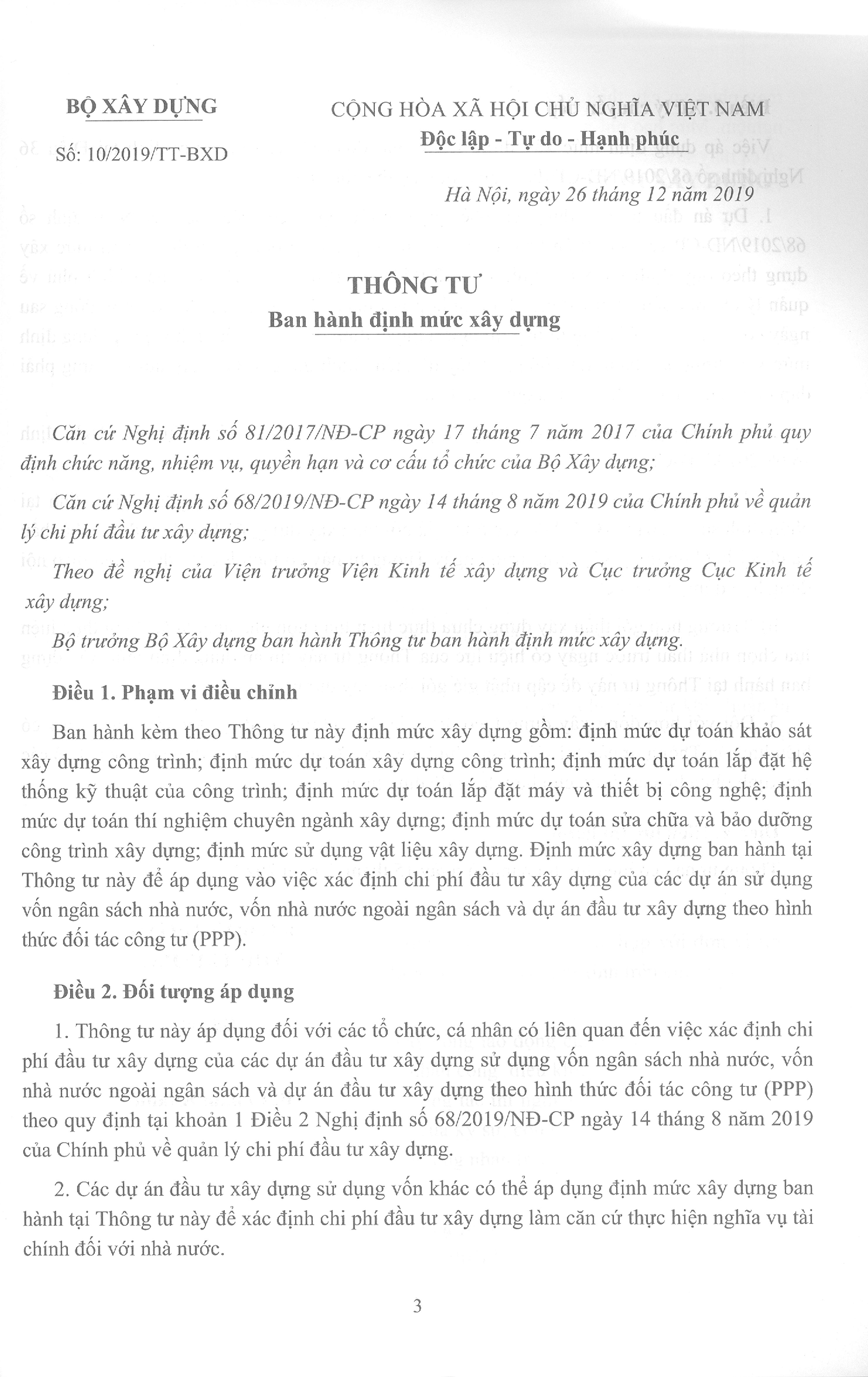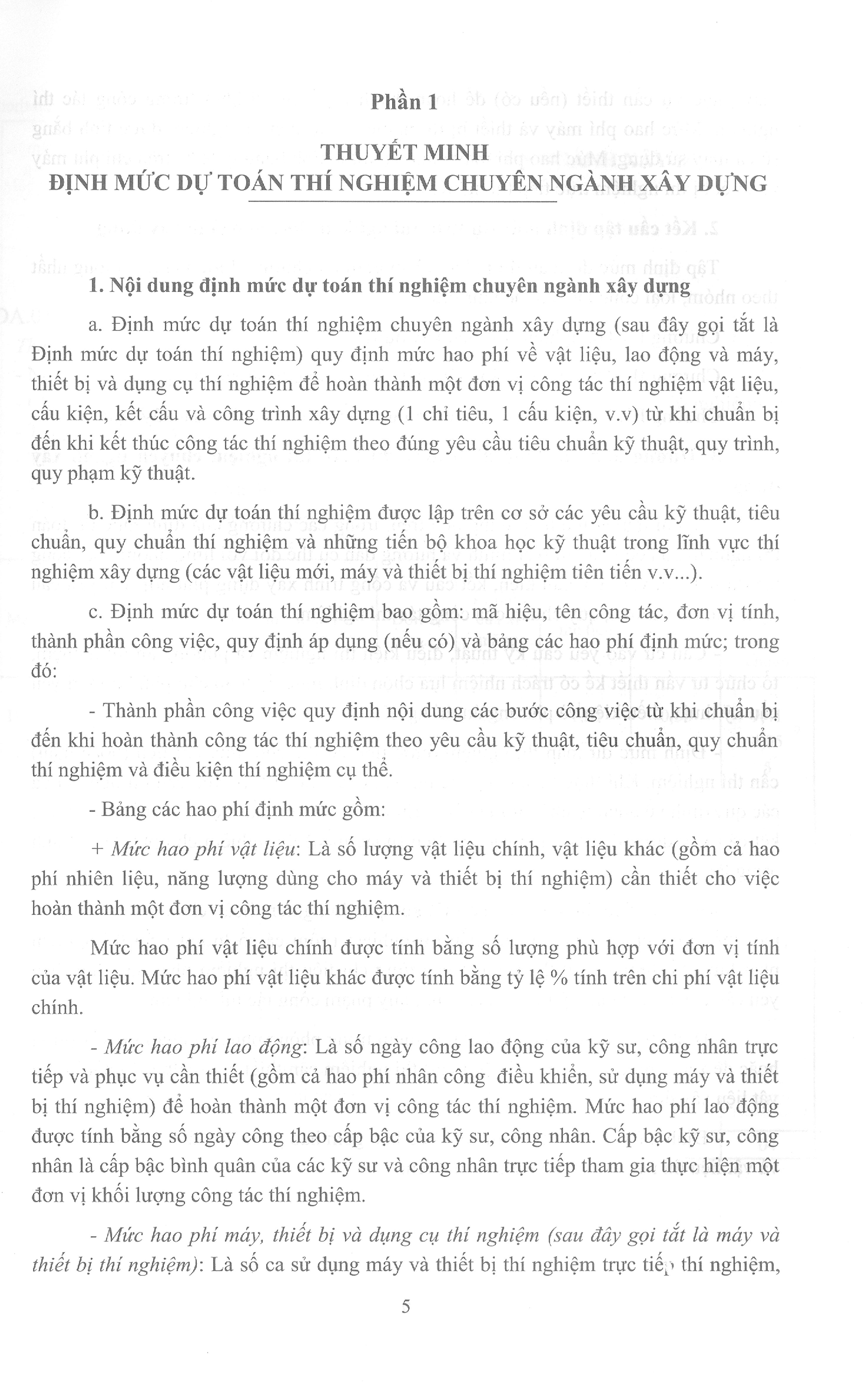 Định mức dự toán thí nghiệm chuyên ngành xây dựng (sau đây gọi tắt là Định mức dự toán thí nghiệm) quy định mức hao phí về vật liệu, lao động và máy, thiết bị và dụng cụ thí nghiệm để hoàn thành một đơn vị công tác thí nghiệm vật liệu, cấu kiện, kết cấu và công trình xây dựng (1 chỉ tiêu, 1 cấu kiện, ) từ khi chuẩn bị đến khi kết thúc công tác thí nghiệm theo đúng yêu cầu tiêu chuẩn kỹ thuật, quy trình, quy phạm kỹ thuật.