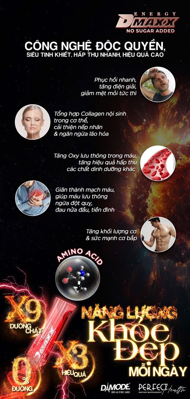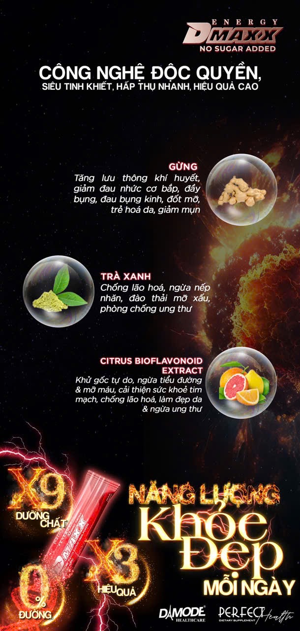 Dmaxx energy formula là sản phẩm thức uống năng lượng có chức năng bổ sung năng lượng cho người uống mỗi ngày dưới dạng thức uống hòa tan.