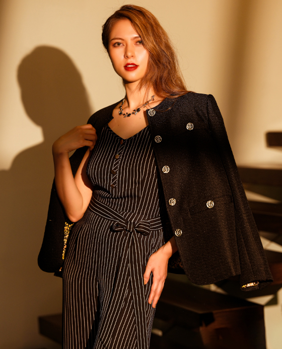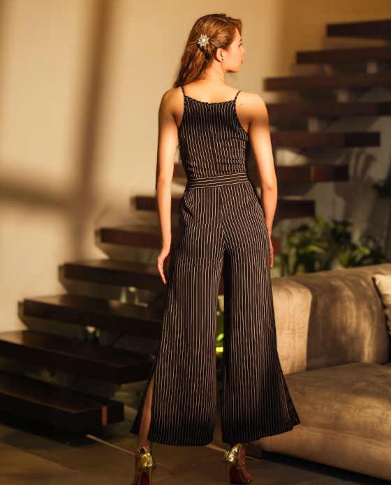 Jumpsuits với thiết kế dáng dài, ống rộng xẻ hai bên, ôm ngực, ôm eo khéo léo tôn vinh đường cong cơ thể, đặc biệt với những Quý cô có vòng mông tròn đầy. Thiết kế hai dây đề cao nét trẻ trung, khoẻ khoắn của bờ vai, và cũng dễ dàng phối với áo khoác, khăn choàng khi bạn cần thêm gia vị trang nhã, kín đáo cho bộ trang phục.