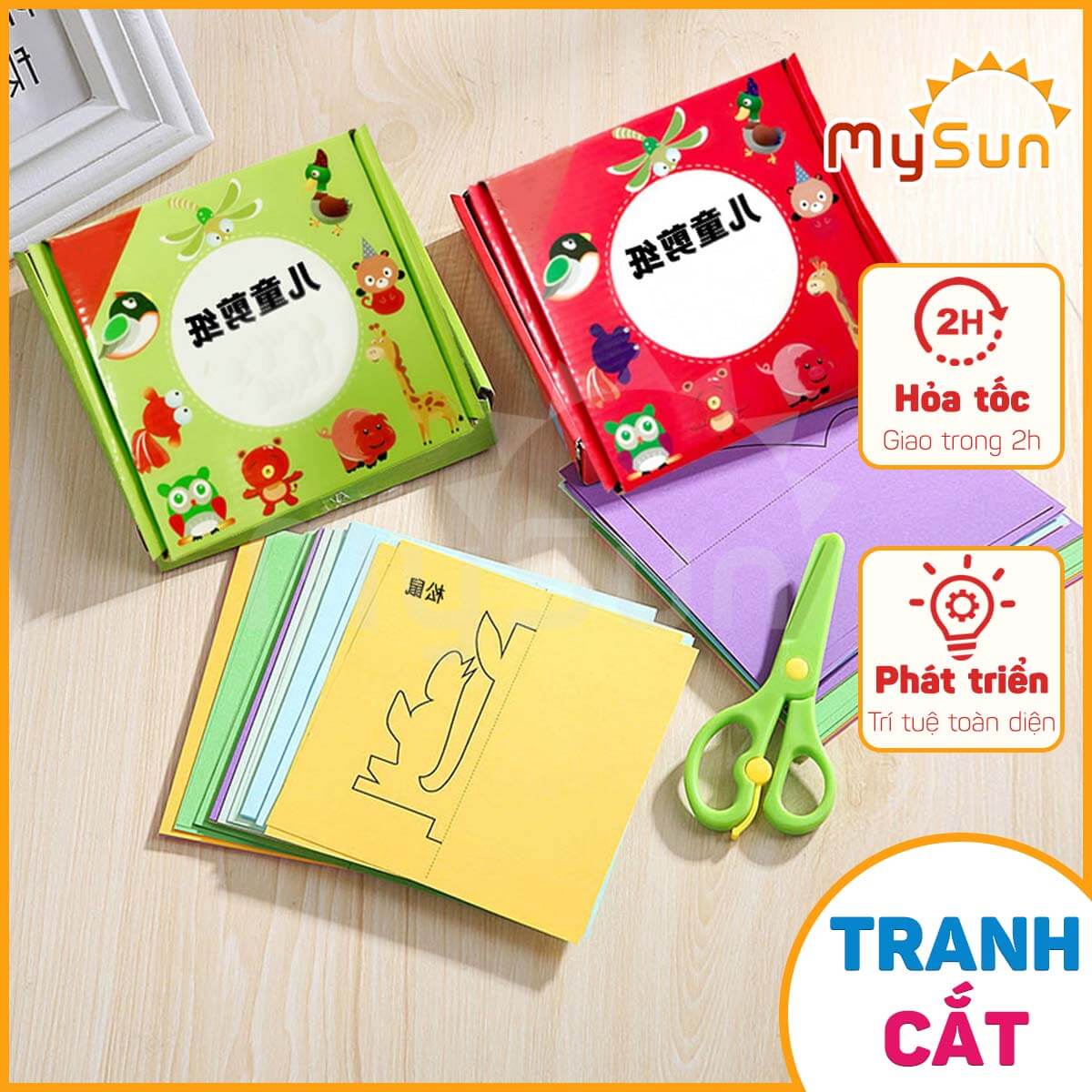 - 288 tờ + kéo: gồm 192 hình màu + 96 hình gập cắt và 1 cây kéo.