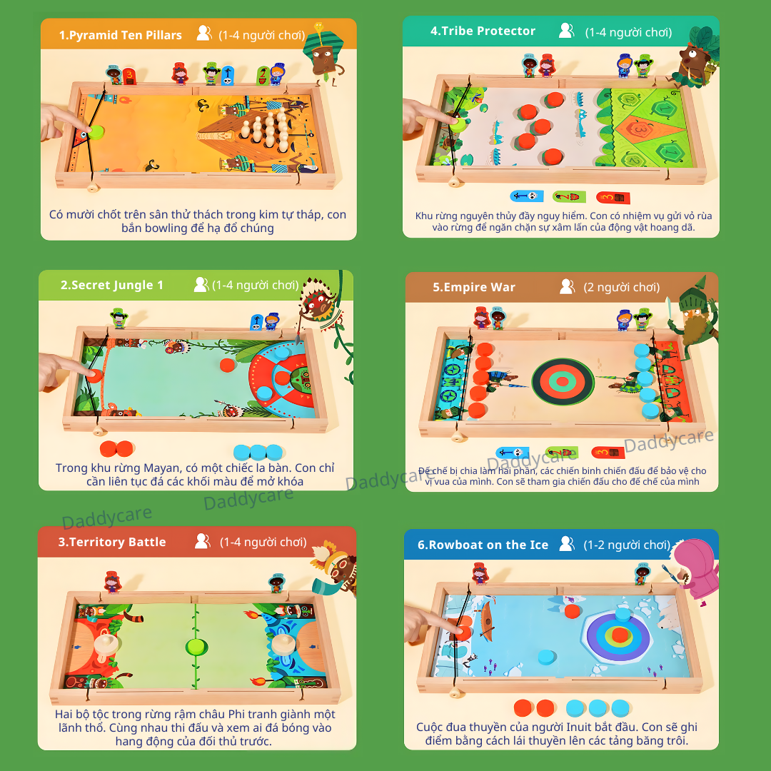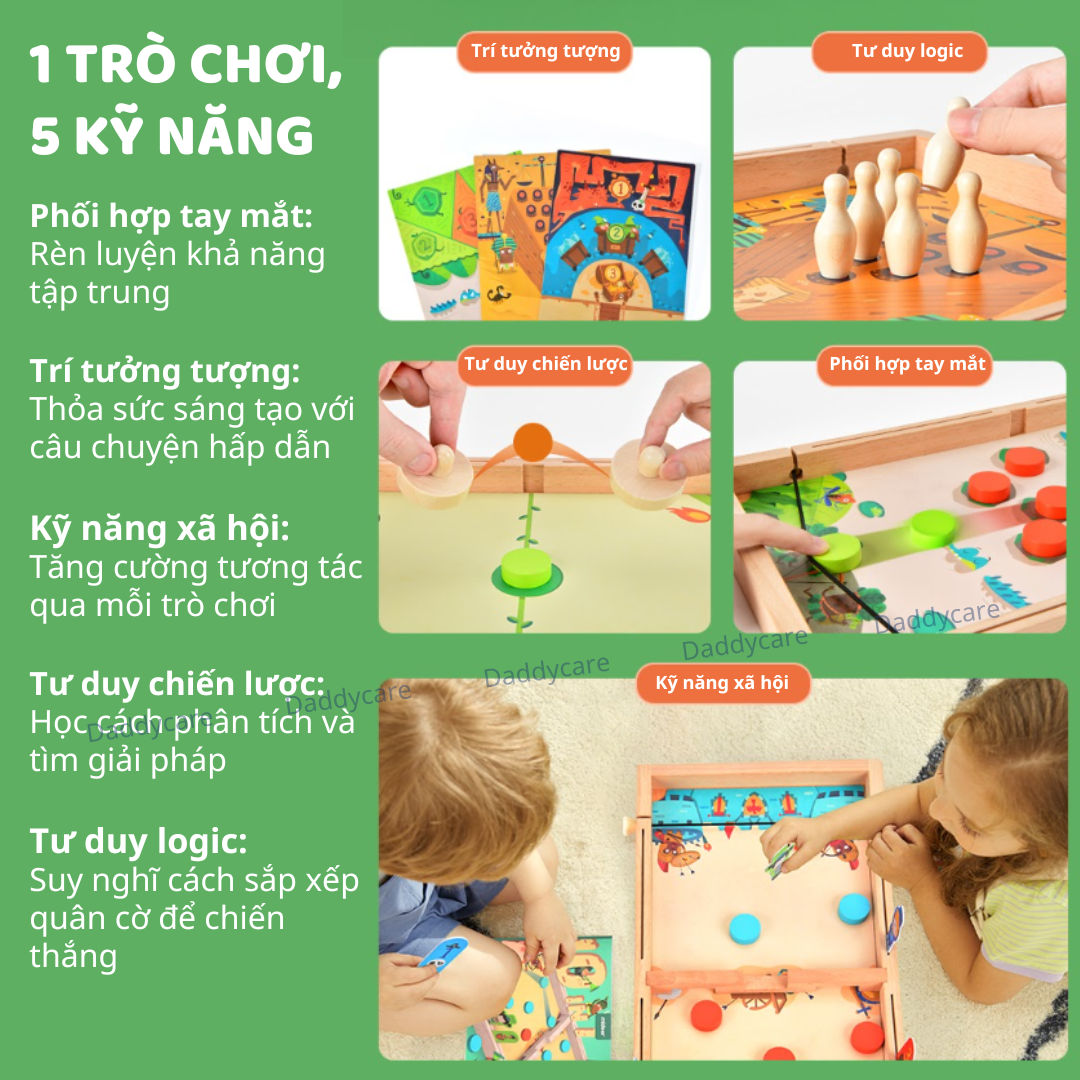 - Túi đựng tiện lợi: Bộ trò chơi kèm túi đựng và sách hướng dẫn chi tiết, dễ dàng mang theo và bảo quản.