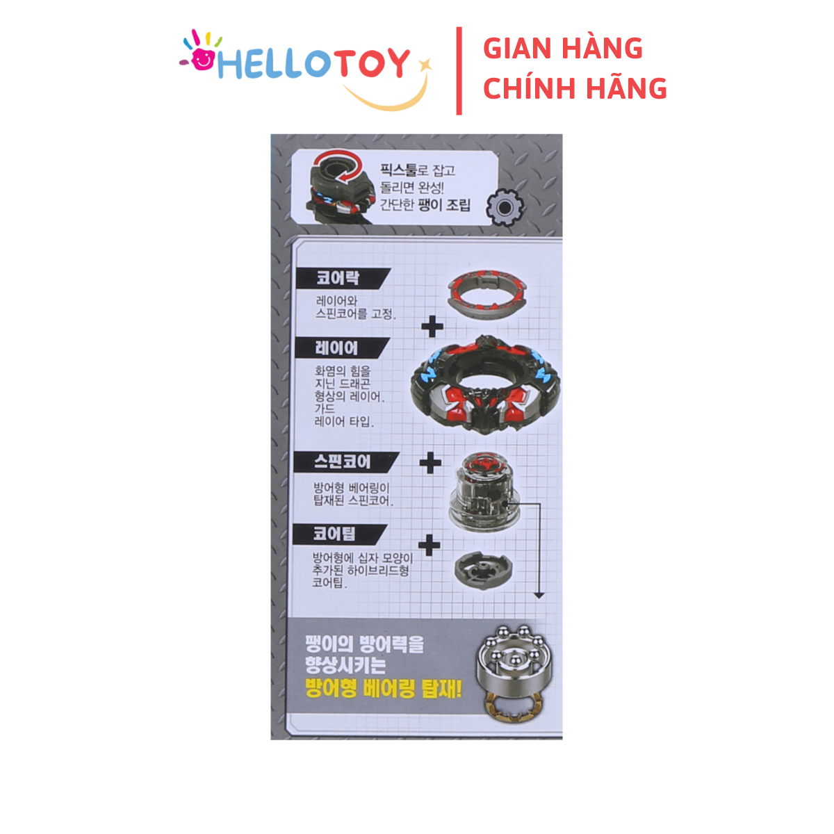 1.Tên sản phẩm: Đồ chơi Trẻ em 2.Tên hàng hóa: [CHARGING TOP SPINNER] CON QUAY RANDOM GEAR LIGRIS 3.Mã hàng hóa: TSP-A-016 4.Thành phần: Nhựa ABS 5.Thông số kỹ thuật: 83*40*62 (mm), 47 g, không
