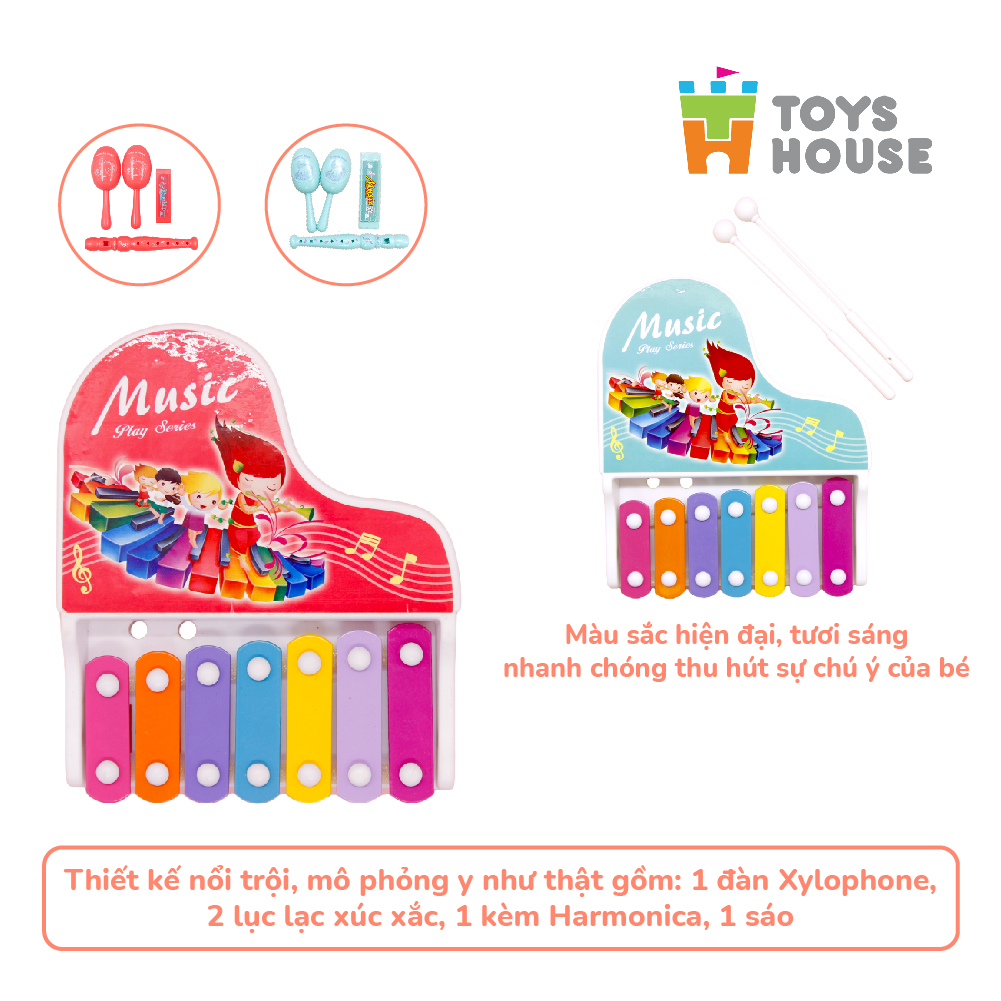 ✨Đồ chơi đàn gõ Xylophone kèm sáo, lục lạc, kèn harmonica - Đồ chơi âm nhạc cho bé ToyHouse 682-9