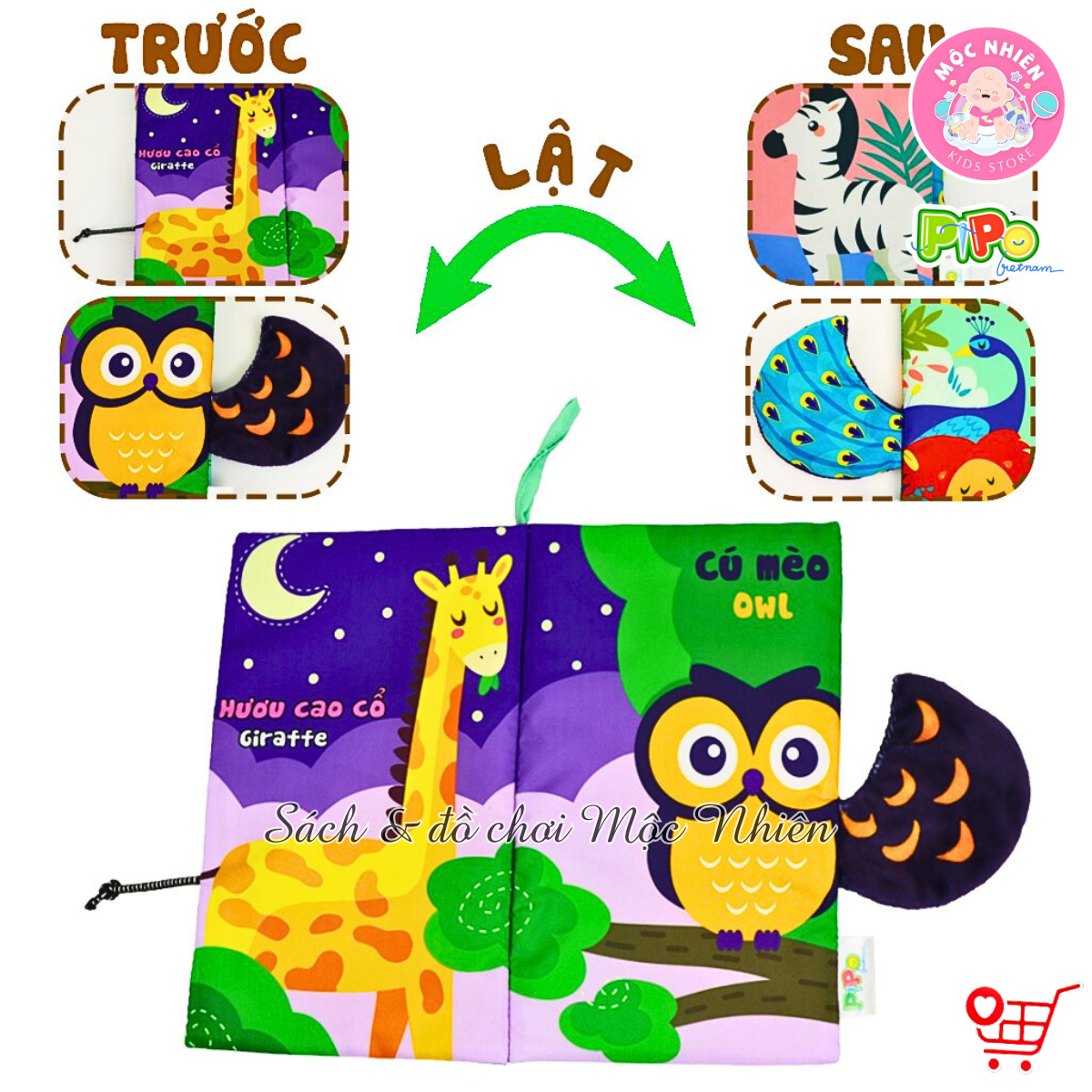 Đồ Chơi Giáo Dục Sớm Cho Trẻ Sơ Sinh - Sách Vải Đoán Đuôi Song Ngữ Việt Anh - PiPo Vietnam Sách vải đoán đuôi đồ chơi an toàn cho bé từ 6 tháng