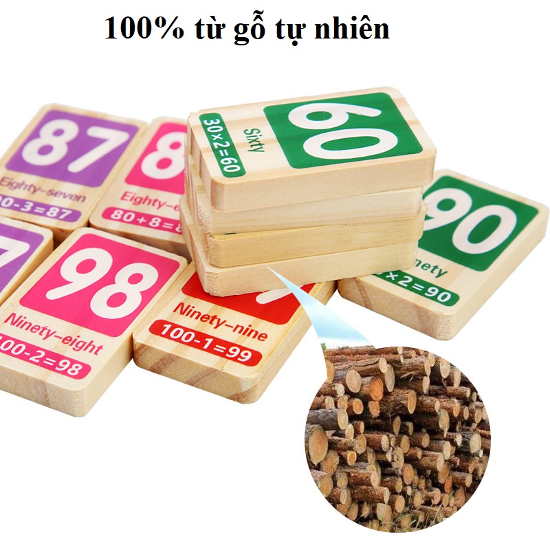 - Dành cho bé từ 3 tuổi trở lên ** ĐẶC ĐIỂM NỔI BẬT: Bộ Domino gỗ 100 số học kèm toán và tiếng anh đồ chơi giáo dục montessori cho bé