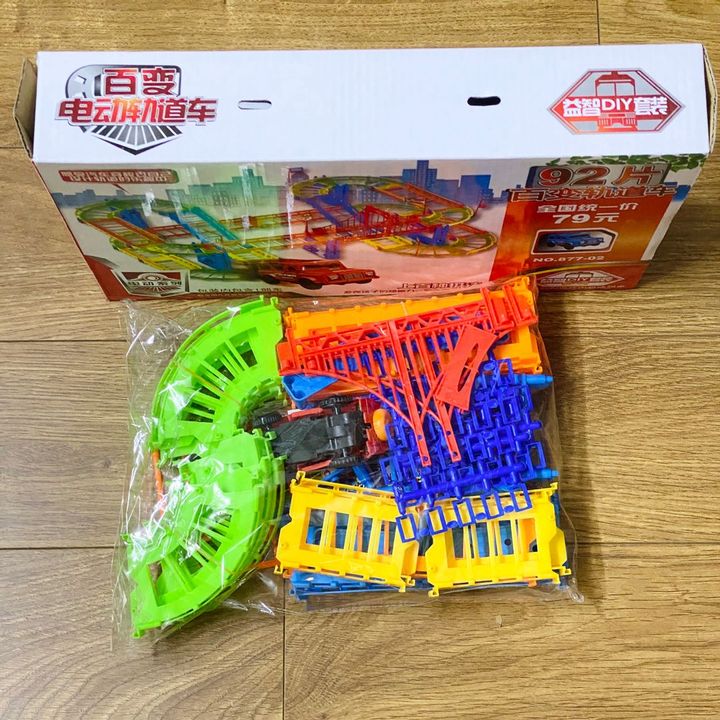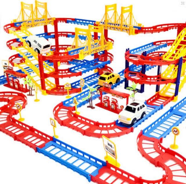 bộ đồ chơi ô tô vượt cầu, chạy trên đường ray( hướng dẫn cách lắp)