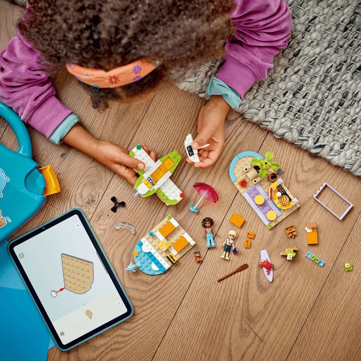 Cầm vali và tham gia cùng Aliya và Olly vui chơi tại bãi biển! Lên chuyến bay thủy phi cơ – chú chó yêu thích bay lượn Aira cũng không thể thiếu. Thư giãn trên bãi biển hoặc thử chơi ván lướt sóng, đừng quên quan sát chú cá heo nhé! Hướng tới khu vực vui chơi trên bãi biển để lắp ráp lâu đài cát hoặc thưởng thức kem. Sau đó, bạn có thể lắp ráp lại các mô hình thành một cảnh vật mới!
