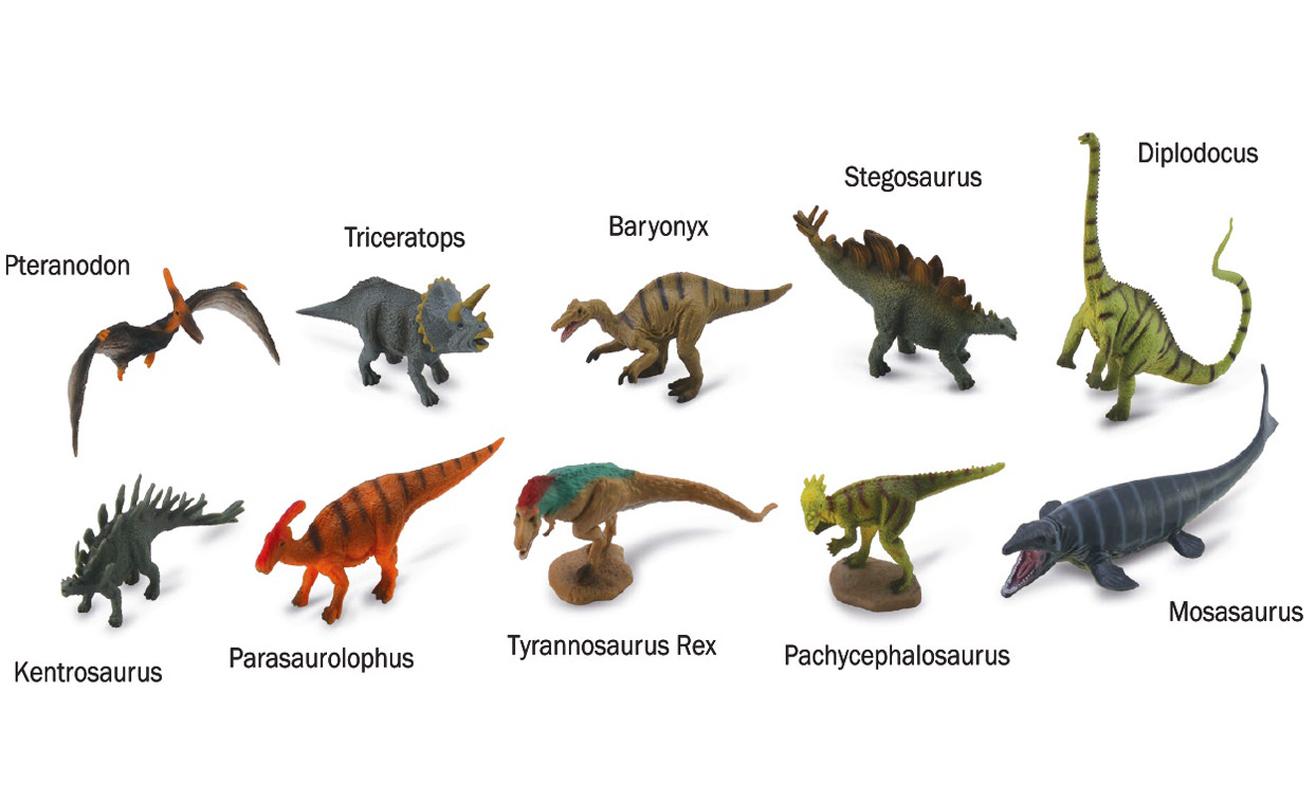 - Mô hình thu nhỏ của 10 loài khủng long giúp bé khám phá thế giới thời tiền sử.