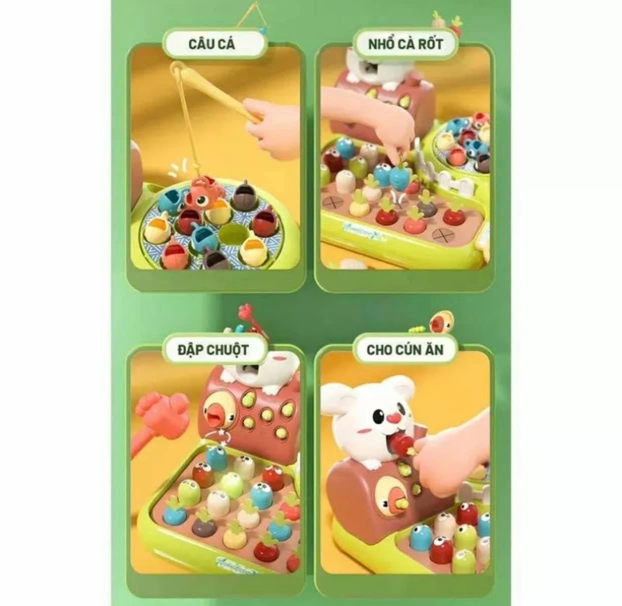 ✨Đồ chơi nông trại Funny Happy Farm 4in1 tích hợp đồ chơi câu cá, trồng củ cải, bắt sâu, đập chuột, đồ chơi Montessori