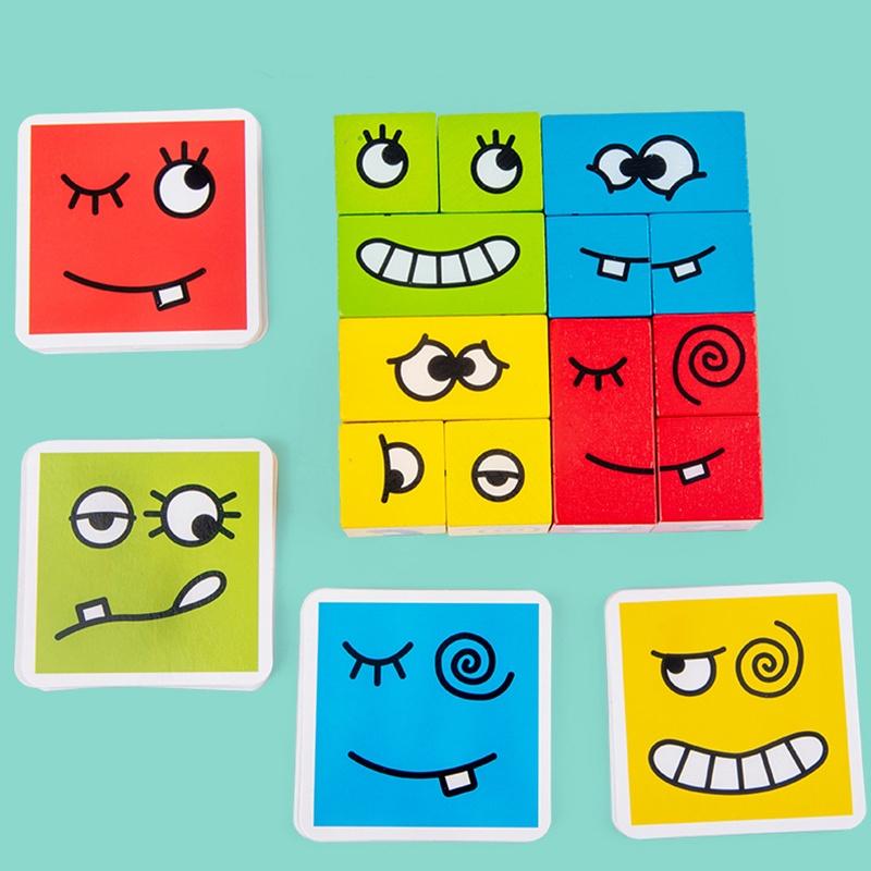 Bộ đồ chơi Rubik thay đổi cảm xúc khuôn mặt – Trò chơi rèn luyện sự nhanh tay nhanh mắt cho bé. Sản phẩm với chất liệu gỗ tự nhiên sử dụng sơn màu hữu cơ nên rất an toàn cho bé