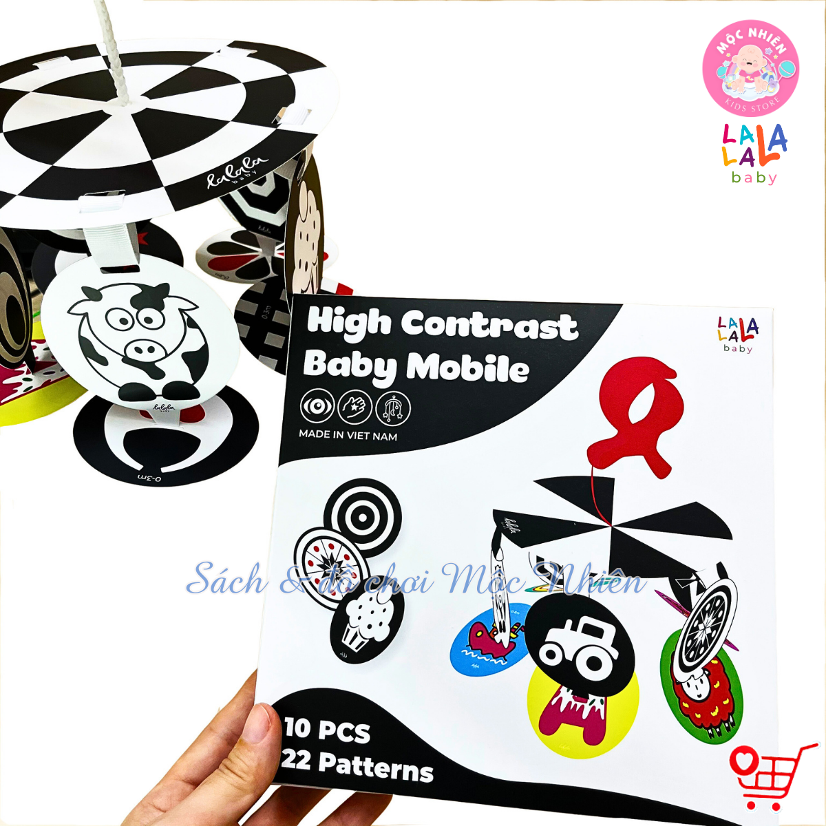 - Giới thiệu đến ba mẹ bộ treo cũi với những hình ảnh và màu sắc có độ tương phản cao để sớm phát triển thị giác và đa giác quan cho bé