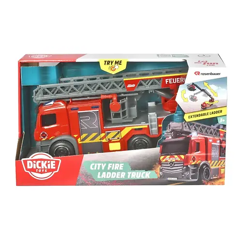 Những chiếc xe DICKIE TOYS City Fire Ladder Truck được thiết kế với chức năng của 1 chiếc xe cứu hỏa chân thực với thang cứu hộ có thể kéo ra. City Fire Ladder Truck mang đến một chiếc xe cứu hỏa chân thực cho các bé. Với hiệu ứng âm thanh và đèn sáng, những chiếc xe sẽ trở nên chân thực hơn, thúc đẩy trí tưởng tượng của các bé. Thang xe có thể kéo dài cực đại 60 cm.