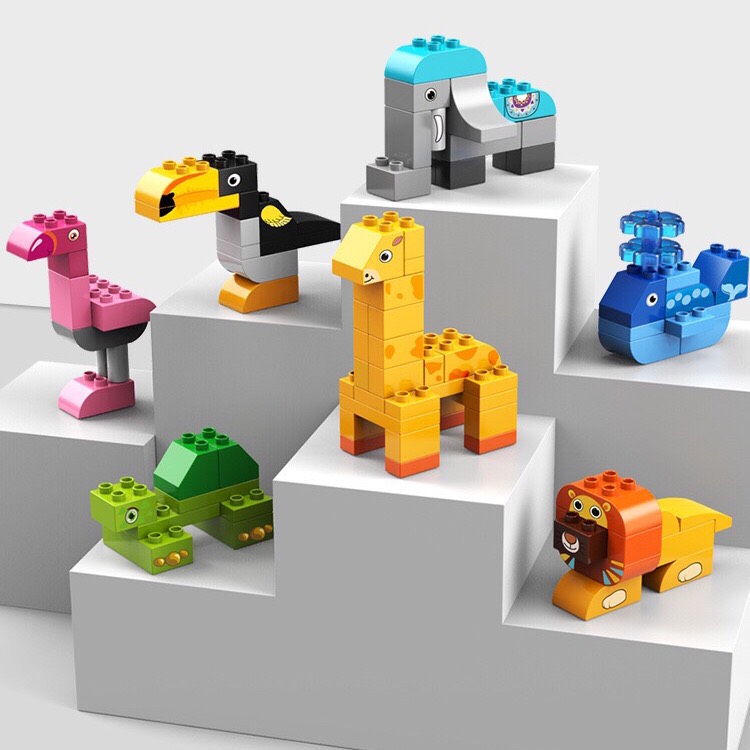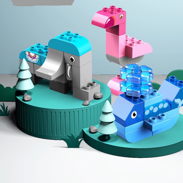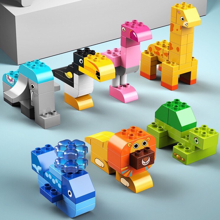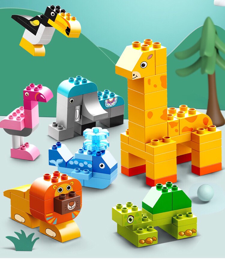- Bé có thể lắp ghép được những con thú dễ thương như: Sư Tử, Voi, Cá Heo, Hươu Cao Cổ, Rùa, C