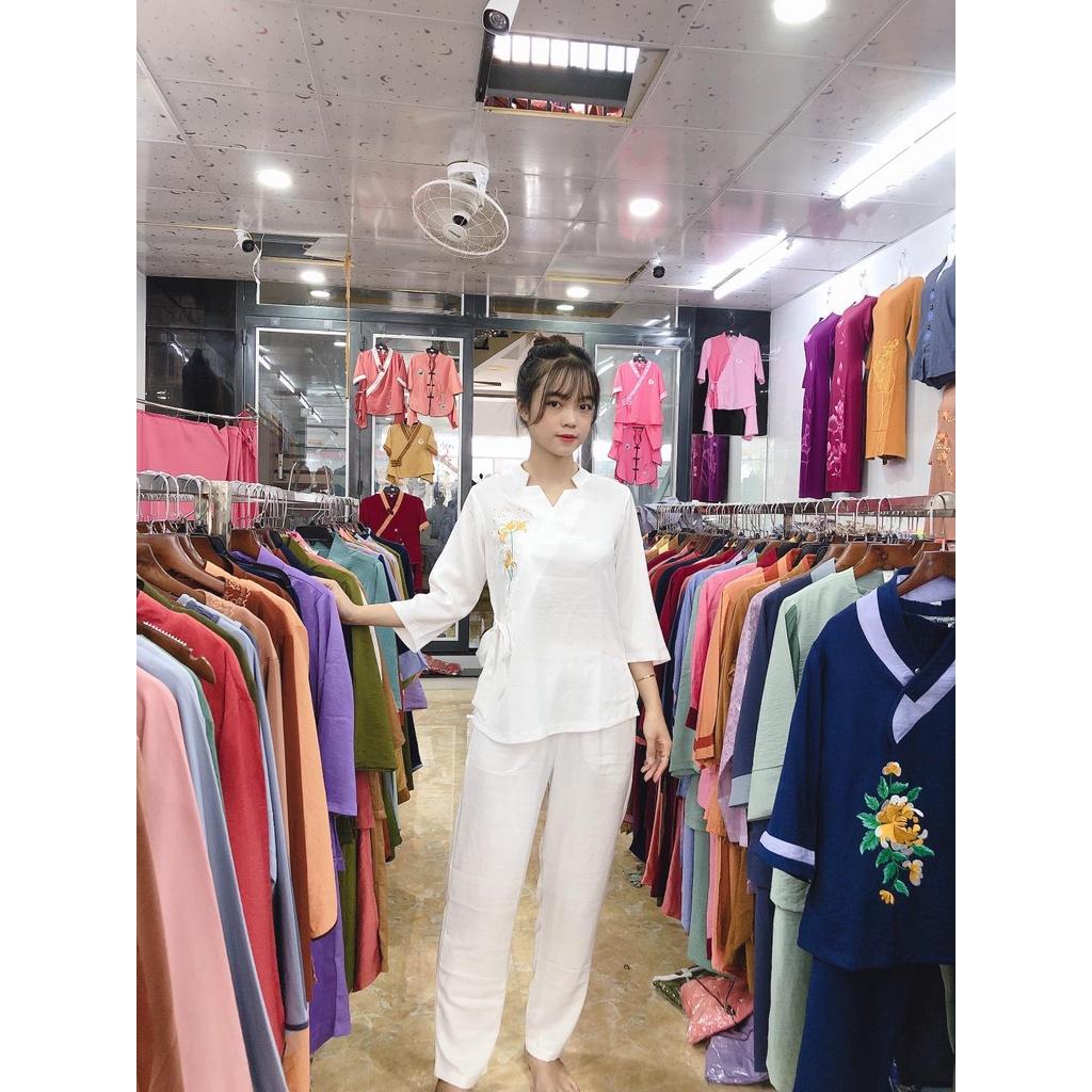 Bộ đi chùa thêu chữ tâm | Pháp Phục Phương Linh