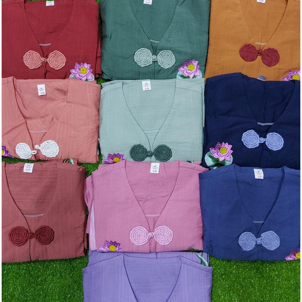Mẫu pháp phục nữ - quần áo Phật tử đi chùa, đồ lam chất kate lụa mềm có co giãn Sen Hồng 0898553583