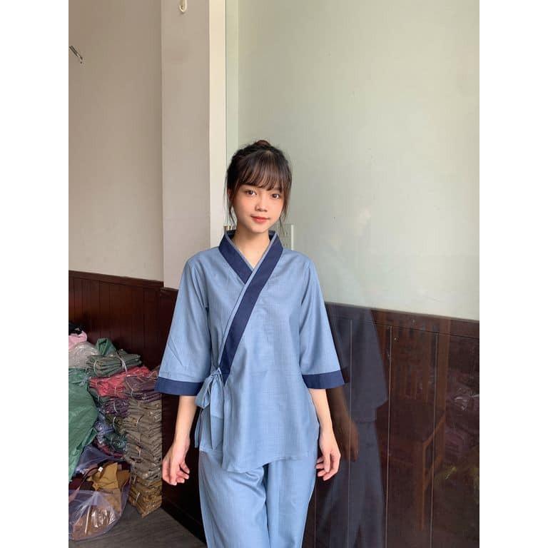 Đồ lam đi chùa đũi nhật thêu mềm mịn thanh lịch #shopcuamy #phapphuc #phapphucdichua #dolamdichuadep