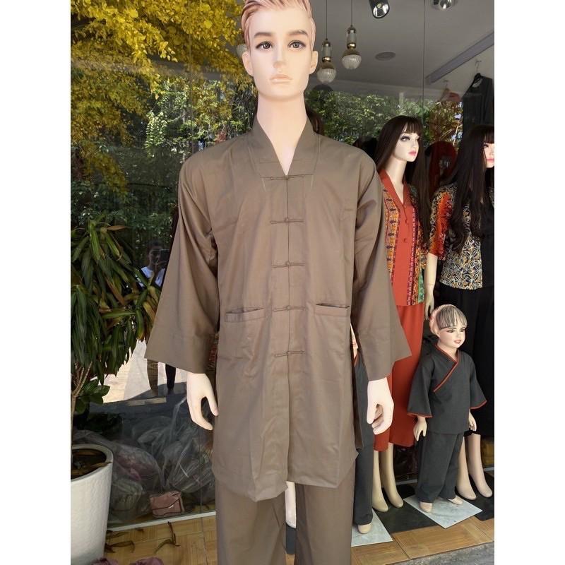Quần áo cư sĩ nam - đồ lam đi chùa Phật tử nam - pháp phục Sen Hồng
