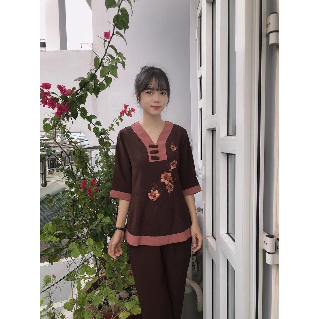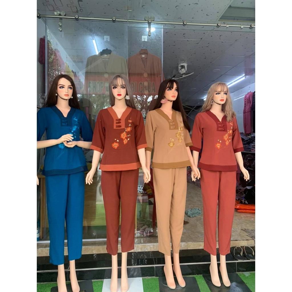 Đồ lam đi chùa đũi nhật thêu mềm mịn thanh lịch #shopcuamy #phapphuc #phapphucdichua #dolamdichuadep